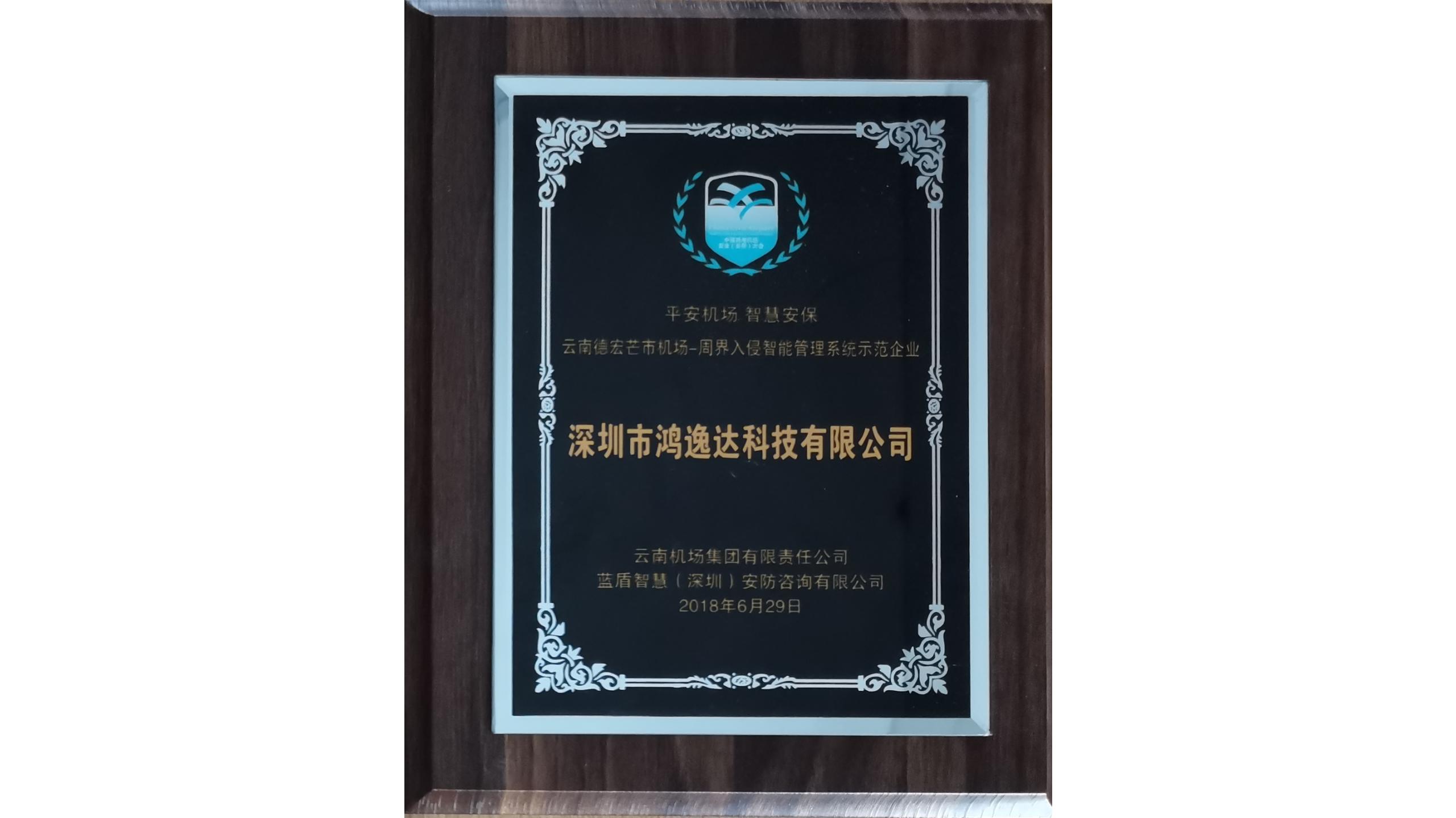 2018-07-24熱烈慶賀鴻逸達(dá)科技成為云南德宏芒市機(jī)場(chǎng)—周界入侵智能管理系統(tǒng)示范企業(yè)